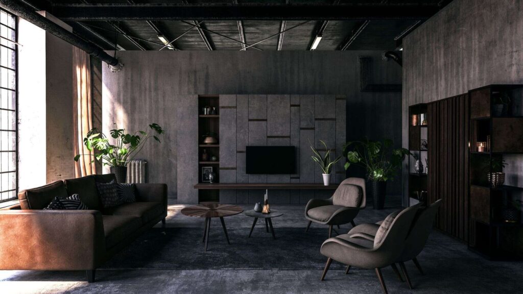 - Χρώματα: Γκρι, μαύρο, λευκό και σκούρο καφέ είναι κυρίαρχα. Μπορείς όμως να προσθέσεις και λίγο βαθύ πράσινο ή μπλε.